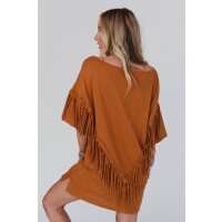 Comfy Fringe Tee Dress - Camel L