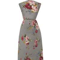 Baumwolle Krawatten, Graue Basis mit Rosen in Rot, Rosa, Gelb & Blau, Grau, Blumen, Notch BERNARDO