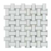 Thassos White Marble Polished Or Honed Basketweave Mosaic Tile W/ Ming-Green Dots POLISHED