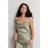 Cassie Sage Cowl Neck Satin Midi Dress