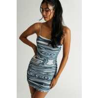 Wavy Vibes Cross Back Bodycon Mini Dress - Blue