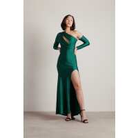 Bond Girl Emerald Satin Asymmetrical Cutout Slit