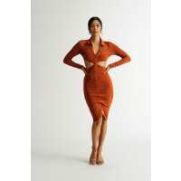 Real Feelings Cutout Bodycon Midi Dress - Brick Red