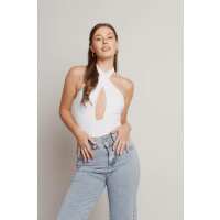 Keep Your Secrets Cross Halter Bodysuit - White