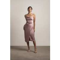 Lucy Light Mocha Rose Satin Tie-Back Slit Midi Dress