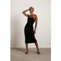 Set The Tone Black Strapless Ruched Bodycon Midi