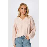 Cuddle Season Rose Fuzzy Cable Knit Sweater
