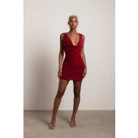 Good For You Burgundy Cowl Neck Ruched Bodycon Mini