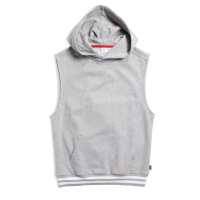 French Terry Sleeveless Hoodie LC - Heather Gray with Striped Rib
