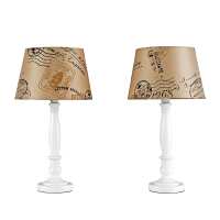 Pair of Spindle Table Lamps With Brown Stamp Print Shades