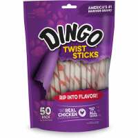 DINGO - Twist Sticks Rawhide Chews with Chicken - 50 Pieces (8.8 oz./550 g)