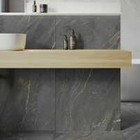 Devoke Dark Grey Matt Stone Effect Wall and Floor Tiles 597x597