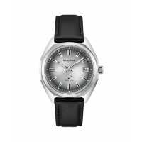 Bulova Classic Jet Star Black Leather Strap Grey Dial Watch 96B414