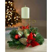Decorated Table Centre Piece Candle Holder - Red/Gold, Single Pillar