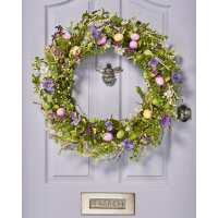 Artificial Floral Egg Spring Wreath, Purple, 28 Inch
