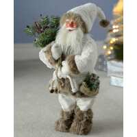 Standing Santa with Gift Sack Figurine, White/ Brown, 60 cm