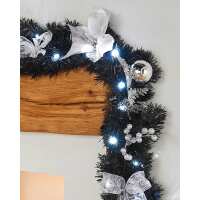 Pre-Lit Decorated Garland, Black/Silver, 9 ft