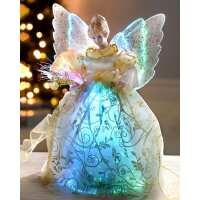 Fibre Optic Angel Christmas Tree Topper, Gold, 25 cm