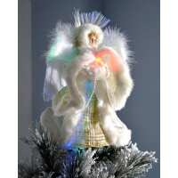 Fibre Optic Angel Christmas Tree Topper, Cream/Gold, 25 cm