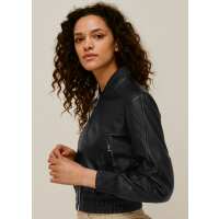 Cropped Leather Bomber Jacket