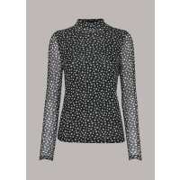 Roll Neck Spot Mesh Top