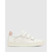 Deanne White and Dusty Pink Trim Leather Sneaker