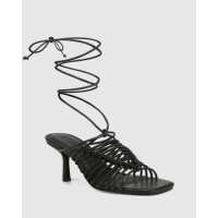 Orielle Black Leather Stiletto Heel Sandal