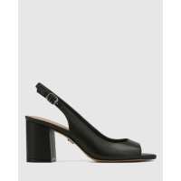 Olivya Black Leather Block Heel Sandal