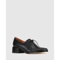 Etta Black Leather Lace Up Flat