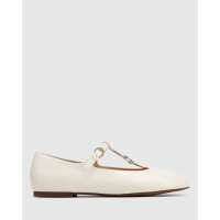 Devorah Off White Leather T-Bar Flat