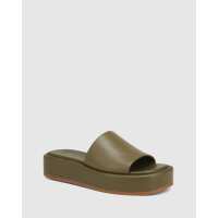 Kaine Khaki Leather Flatform Heel Sandal