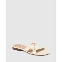 Adele Vintage Ivory Leather Flat Sandal