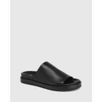 Elwood Black Leather Flat Sandal