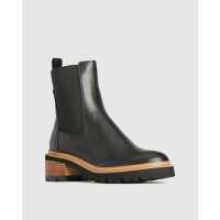 Linear Black Leather Ankle Boot