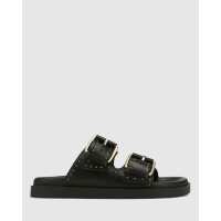Caroline Black Leather Flat Sandal