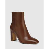 Peggie Cacao Leather Block Heel Ankle Boot