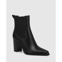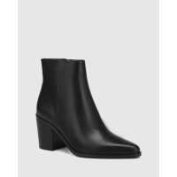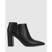 Helenna Black Leather Block Heel Ankle Boot