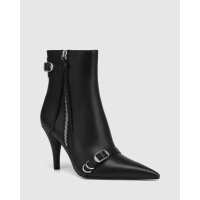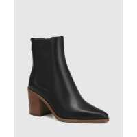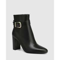 Harlee Black Leather Block Heel Ankle Boot