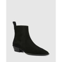 Gadot Black Suede Block Heel Ankle Boot