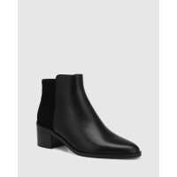 Judith Black Leather and Suede Block Heel Ankle Boot