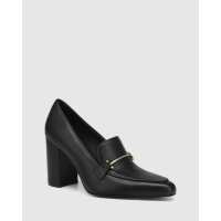 Harriot Black Leather Block Heel Loafer