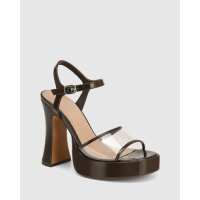 Yaslina Espresso Patent Leather Platform Heel Sandal