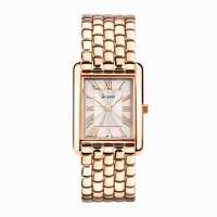 Accurist Rectangle Ladies Watch | Rose Gold Case & Stainless Steel Bracelet with White Dial | 26mm