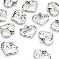 Groom Heart Antique Silver 14x15mm - Pack of 20