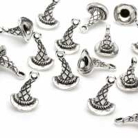Hatched Hat Antique Silver 14x10mm - Pack of 50
