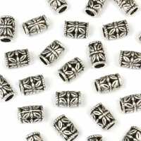 Flower Spacer Tube Bead 5.5x9mm Antique Silver - Pack of 50
