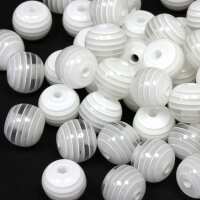 Resin Stripy Rounds 10mm White - Pack of 50