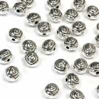 Rose Spacer Bead Antique Silver 7x6mm - Pack of 40