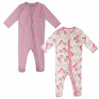 Blush Pink Flamingo Zipsuit 2pk | One Way Zips 0 | 6-12 Months