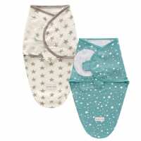 Aqua Spots Grey Stars Swaddle 2pk Small